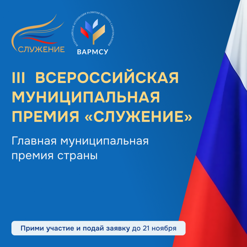 III Всероссийская муниципальная премия Служение - главная муниципальная премия страны. Прими участие и подай заявку до 21 ноября 2025