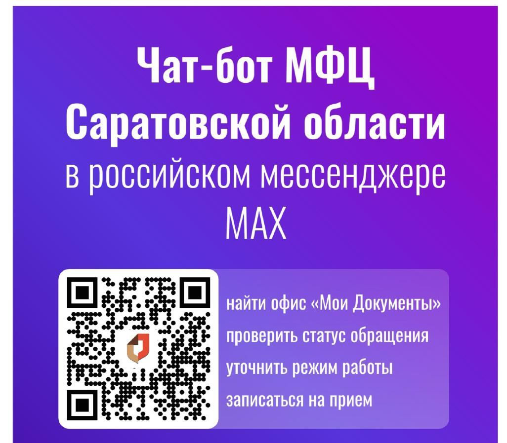 Жителям региона доступен новый формат взаимодействия с многофункциональными центрами Мои документы. На платформе национального мессенджера MAX заработал чат-бот МФЦ Саратовской области, где в два